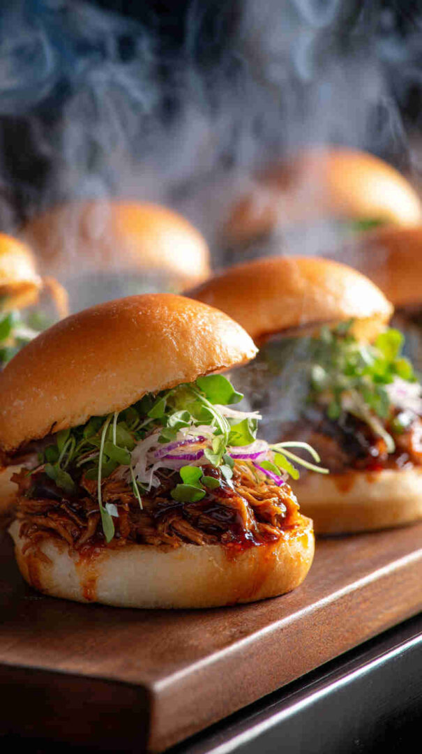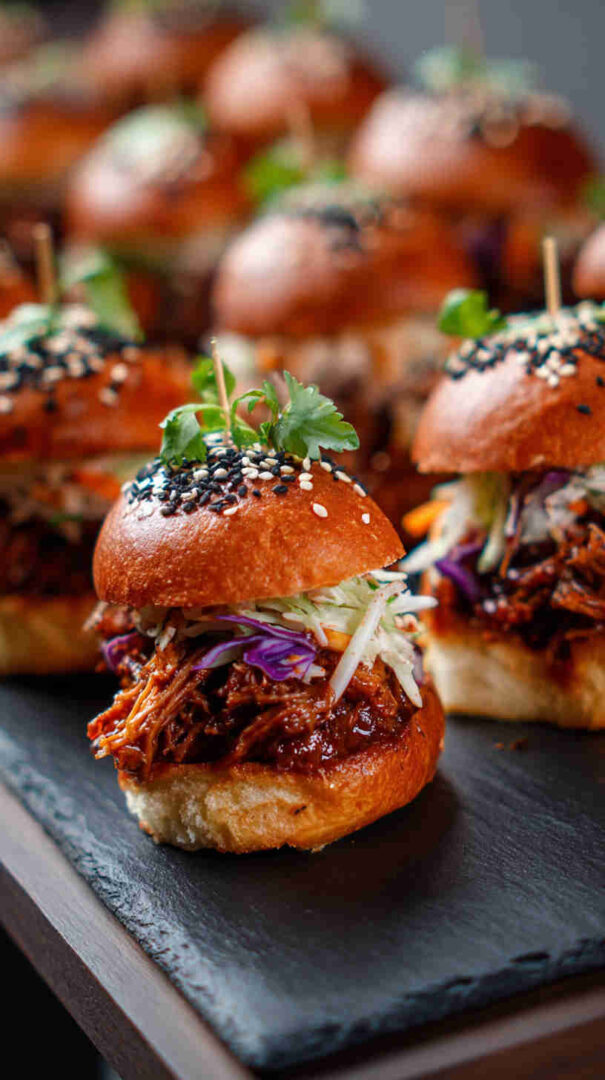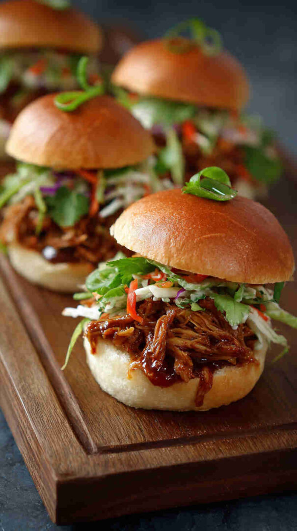 Tender young jackfruit slow-cooked in a rich, sweet-savory Korean BBQ sauce until perfectly shreddable, then piled high on soft slider buns with crunchy sesame slaw. This vegan take on Korean street food delivers bold gochujang-kissed flavors, smoky depth, and irresistible texture in every bite—ideal for parties or easy weeknight dinners.