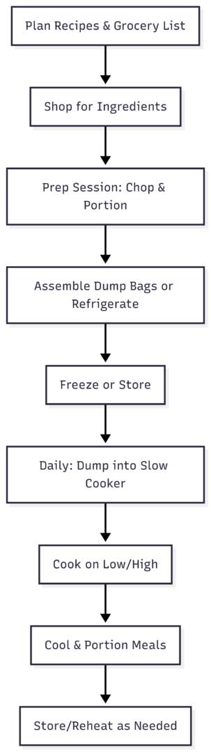To visualize the workflow, here’s a flowchart for a typical slow cooker meal prep session: