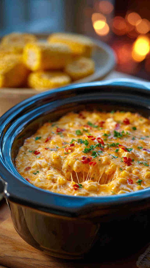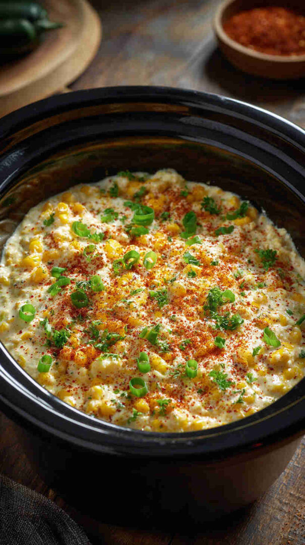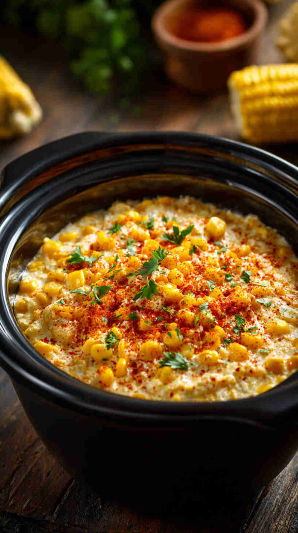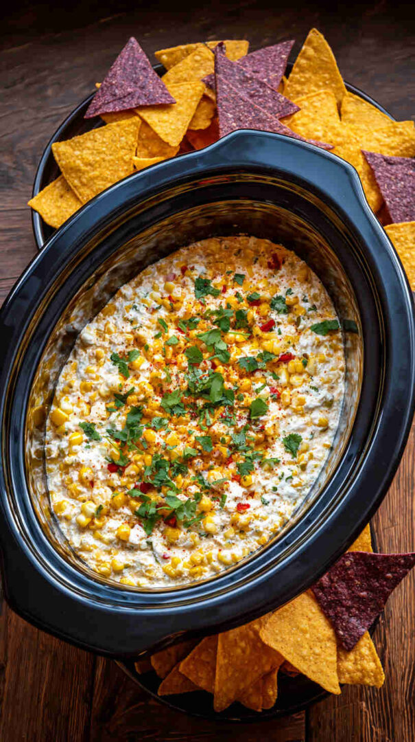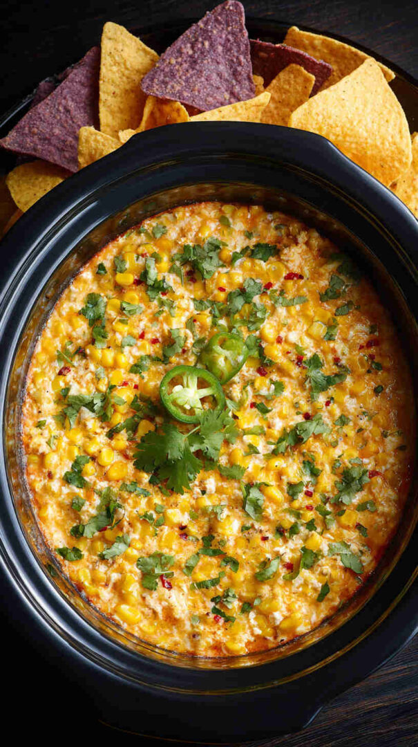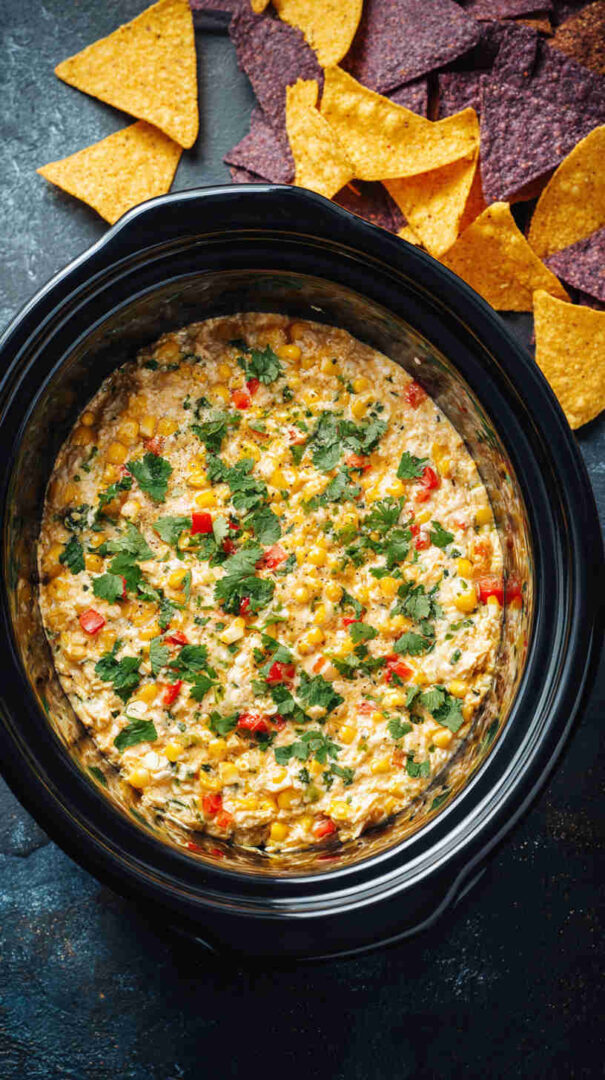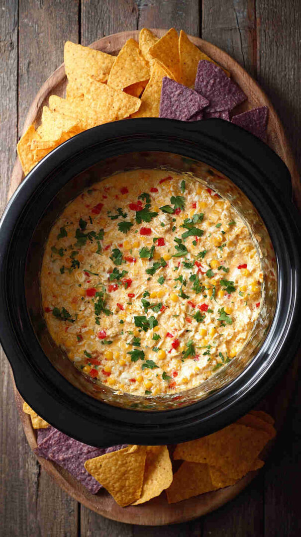 This irresistible Slow Cooker Mexican Street Corn Dip transforms beloved elote flavors into a gooey, cheesy masterpiece. Sweet corn mingles with creamy cheeses, tangy lime, spicy Tajín and chili, plus fresh herbs for a crowd-pleasing appetizer that’s dump-and-go easy. Perfect for parties, game days, or cozy nights—serve hot with tortilla chips for ultimate street food indulgence.