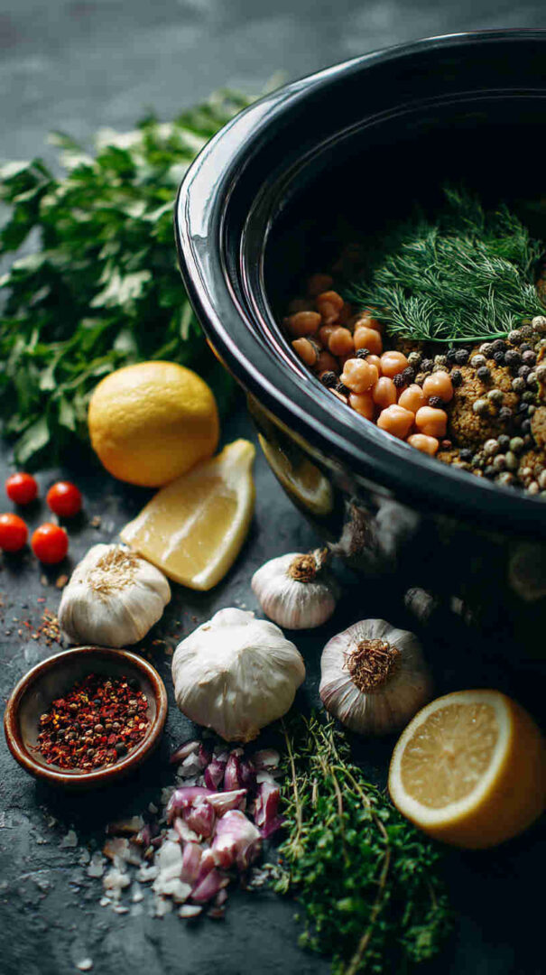 Onion and garlic add savory depth without overpowering. Warm spices such as ground cumin, coriander, and a touch of cayenne or black pepper bring that signature earthy, nutty warmth. A small amount of flour or chickpea flour acts as a binder, while optional baking powder/soda helps with lift. Olive oil brushed on top promotes golden browning in the slow cooker. Salt enhances everything, and fresh lemon juice (optional) adds a zesty lift.