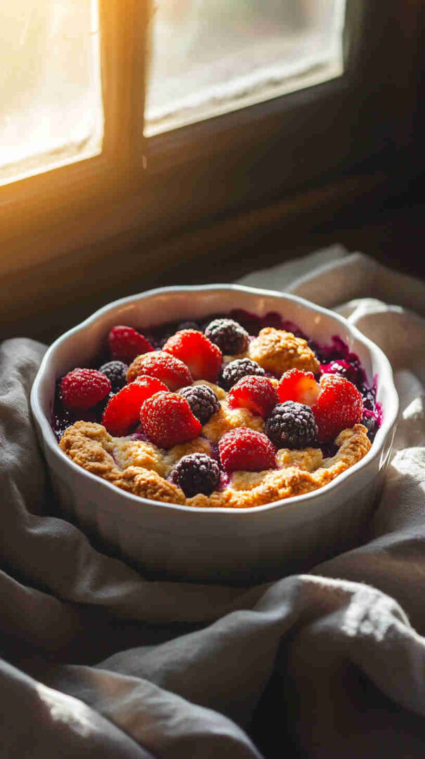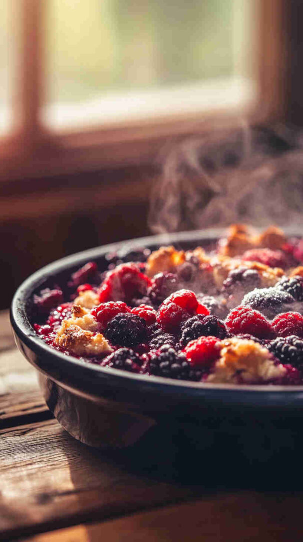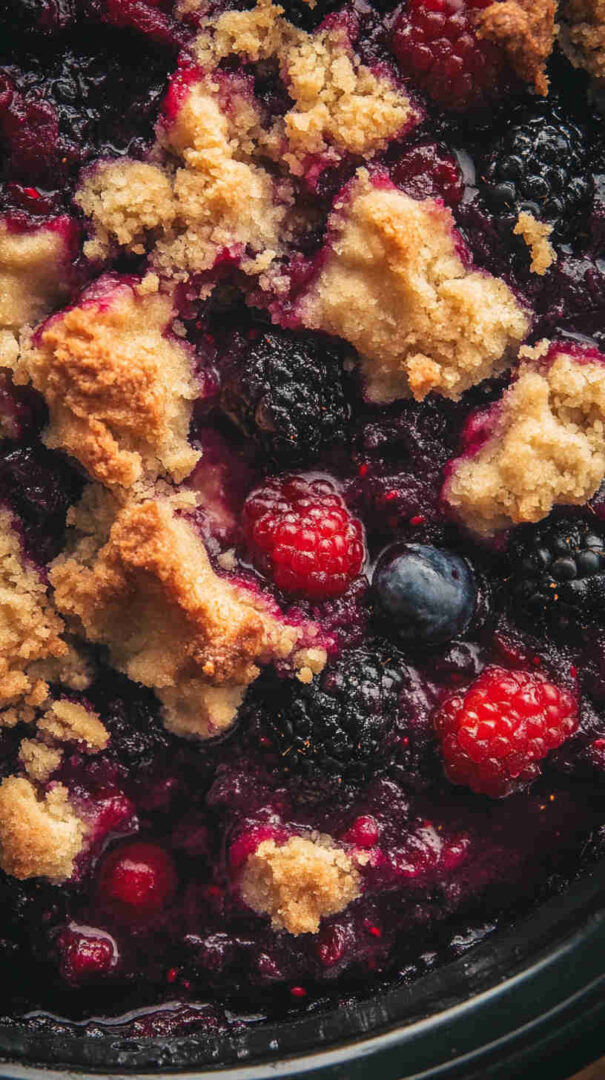 An easy slow cooker dessert with juicy berries and soft topping, perfect for a cozy, homemade treat anytime.