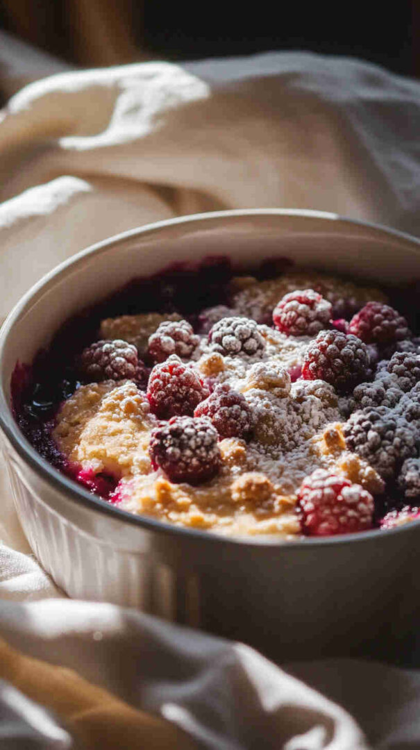 Sugar can be adjusted based on sweetness preference and berry tartness. Cornstarch helps thicken the filling, creating that classic cobbler texture. For the topping, a simple mix of flour, sugar, baking powder, milk, and butter creates a soft, biscuit-like crust that absorbs the berry juices beautifully. Using real butter enhances richness, while a touch of vanilla adds warmth and depth.
