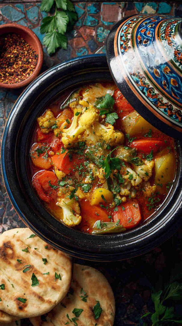 Tender spiced veggies slow-cooked Moroccan-style, wrapped in flatbread with yogurt—easy, vegan street food bliss.