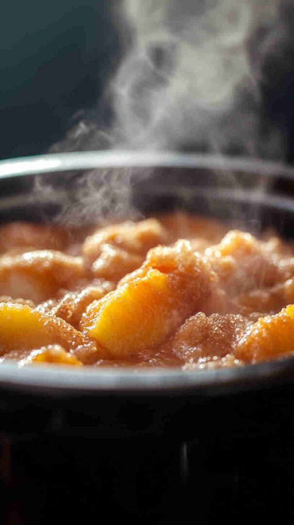 Avoid lifting the lid too often during cooking, as it releases heat and increases cooking time. Adjust sugar depending on peach sweetness. Best enjoyed fresh and warm.