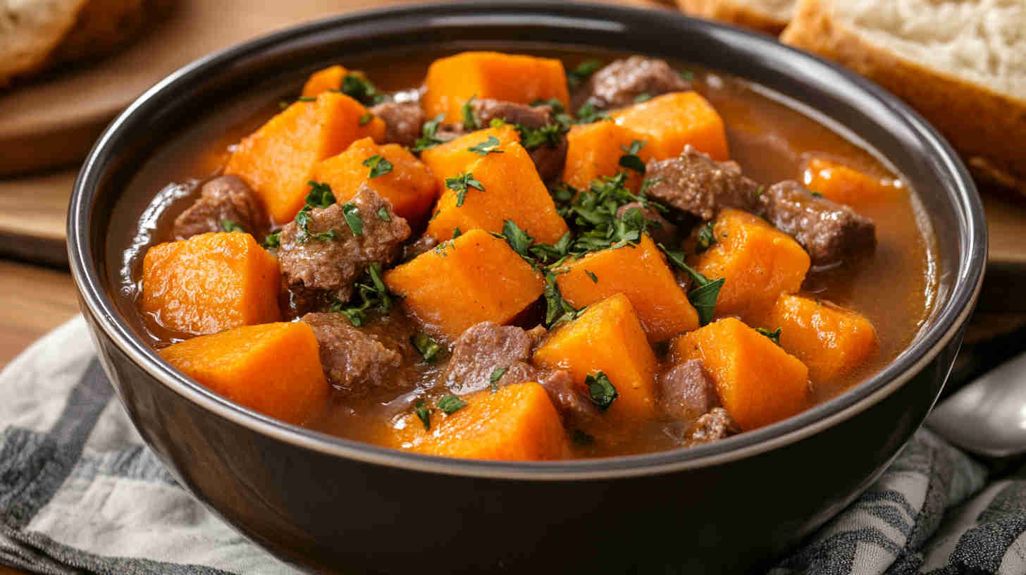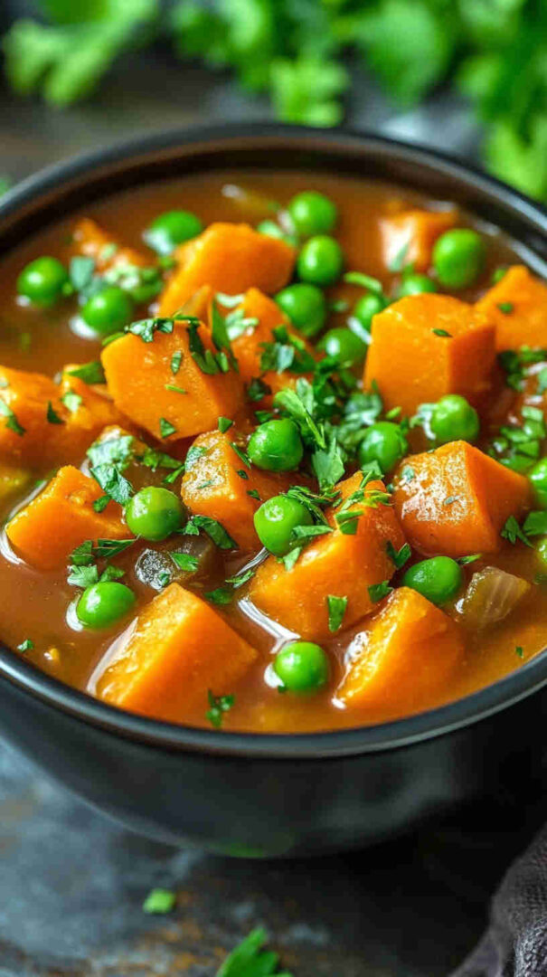 This wholesome slow cooker sweet potato stew features tender chunks of sweet potatoes simmered with chickpeas, warm spices, carrots, and tomatoes for a nutrient-dense, plant-based meal. It’s hearty yet light, packed with fiber, vitamins, and cozy Moroccan-inspired notes—perfect for effortless healthy dinners on busy days.