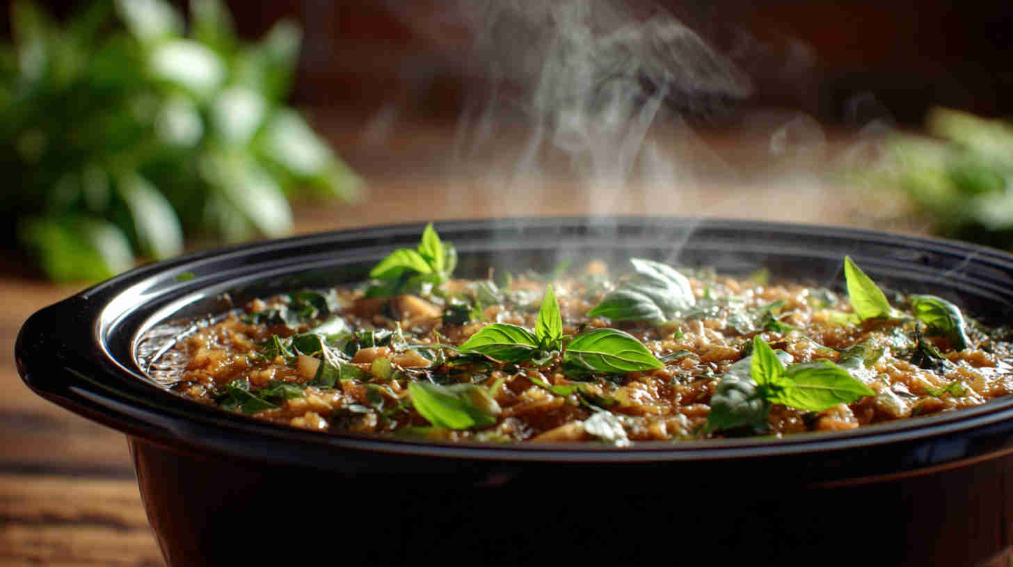 - Get your slow cooker ready and toss in the aromatics! Start by adding the bruised lemongrass pieces, sliced galangal (or ginger), torn kaffir lime leaves, sliced onion, minced garlic, and chilies to your slow cooker. These power players will infuse the broth with that irresistible Thai magic as it simmers.