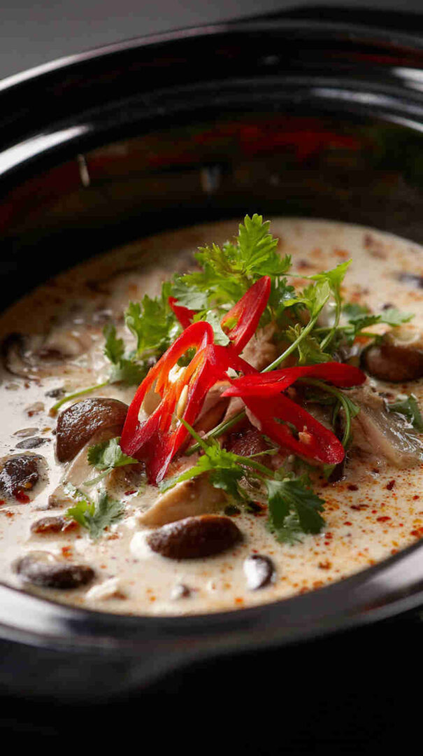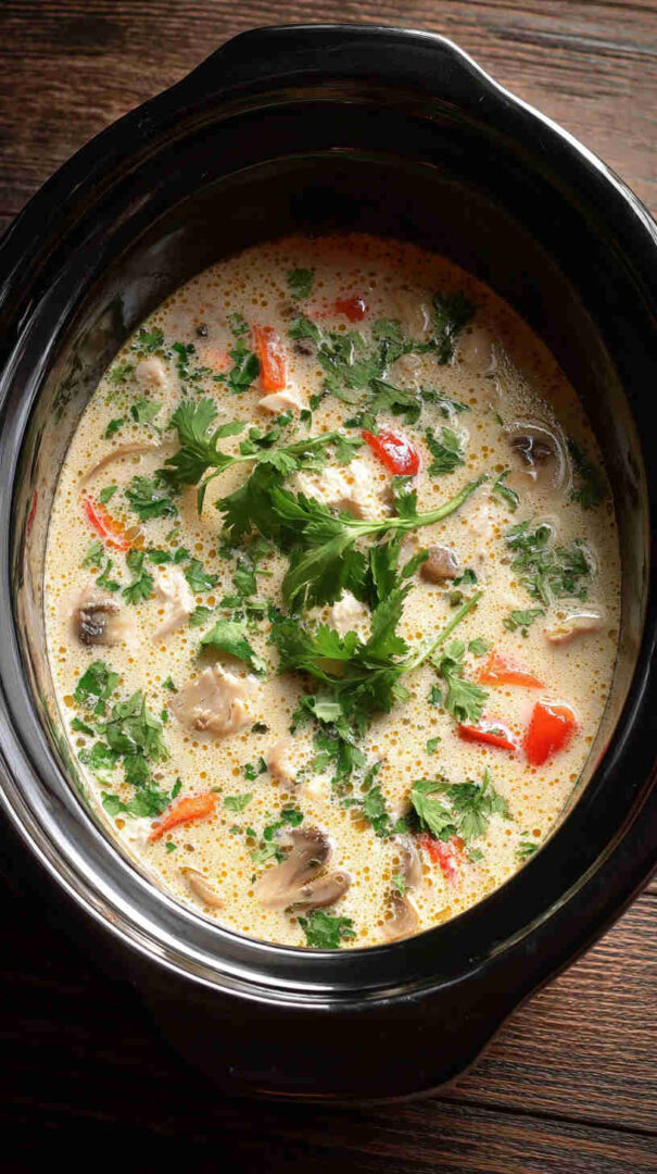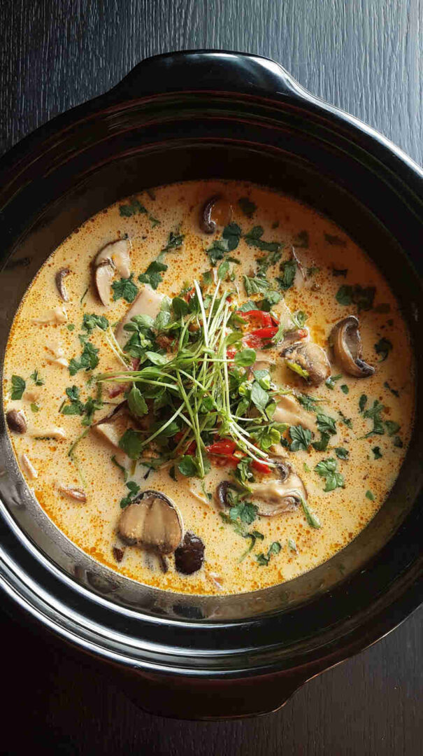 It’s naturally gluten-free (with tamari instead of soy), easily made vegan by skipping any optional protein, and healthier than takeout since you control the ingredients. The slow cooker melds everything into silky perfection, making it ideal for busy weeknights, meal prep, or cozy weekends when you want restaurant-quality Thai comfort food with minimal effort.