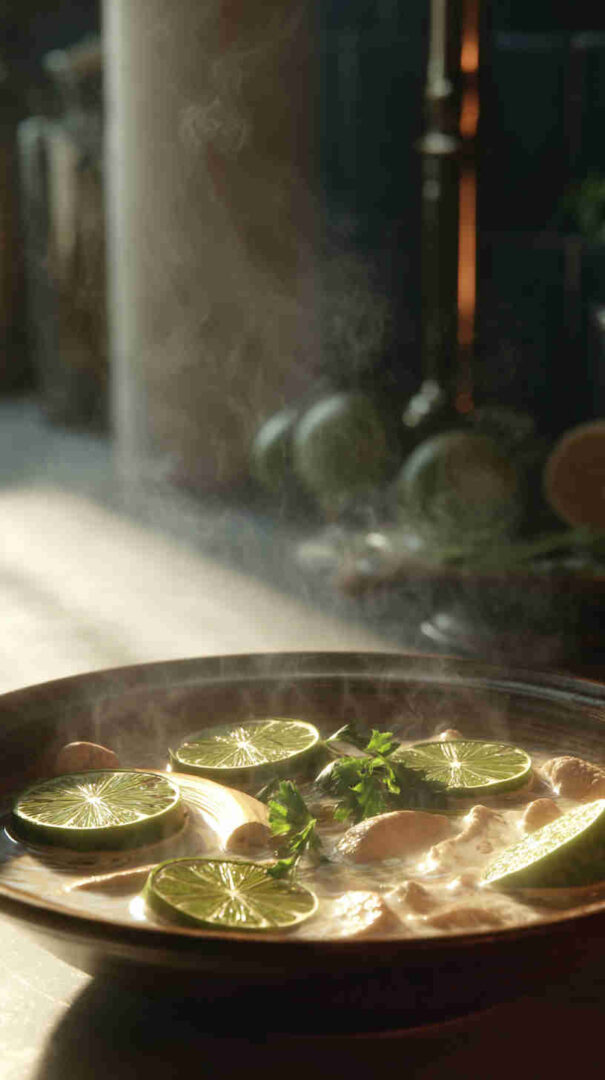 - Garnish generously with fresh basil, cilantro, lime wedges, and sliced chilies right before serving for brightness.