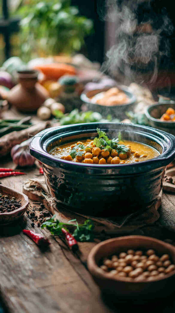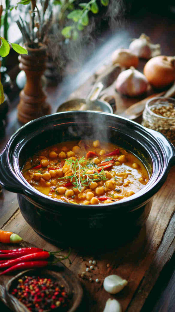 Keep it classic vegetarian or make it your own! For protein boosts, add cubed firm tofu, tempeh, or (if not vegan) chicken thighs—add them at the start for tenderness. Swap chickpeas for lentils, white beans, or cubed sweet potatoes for different textures.