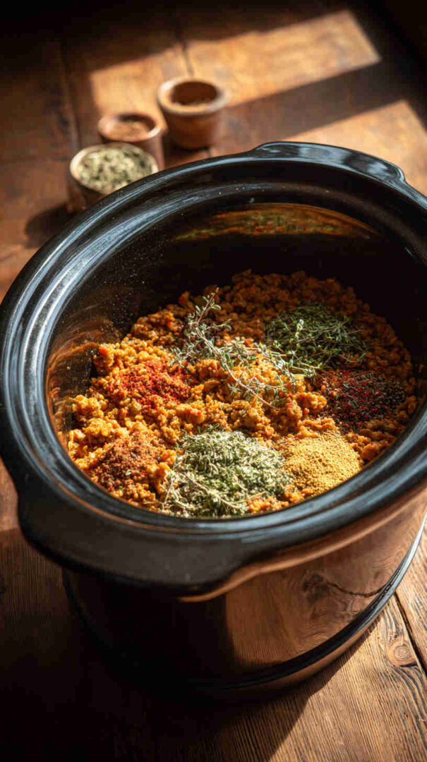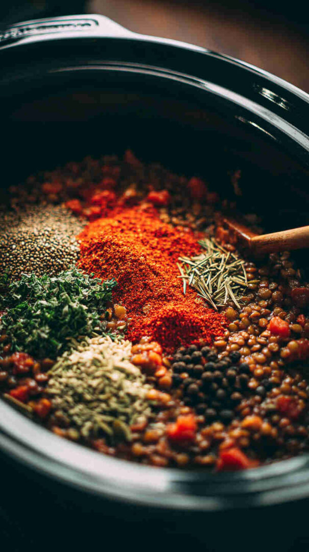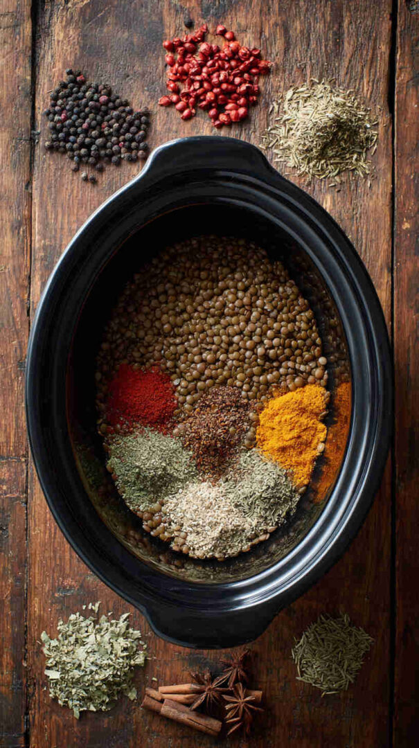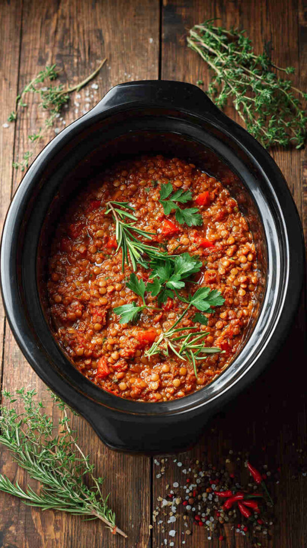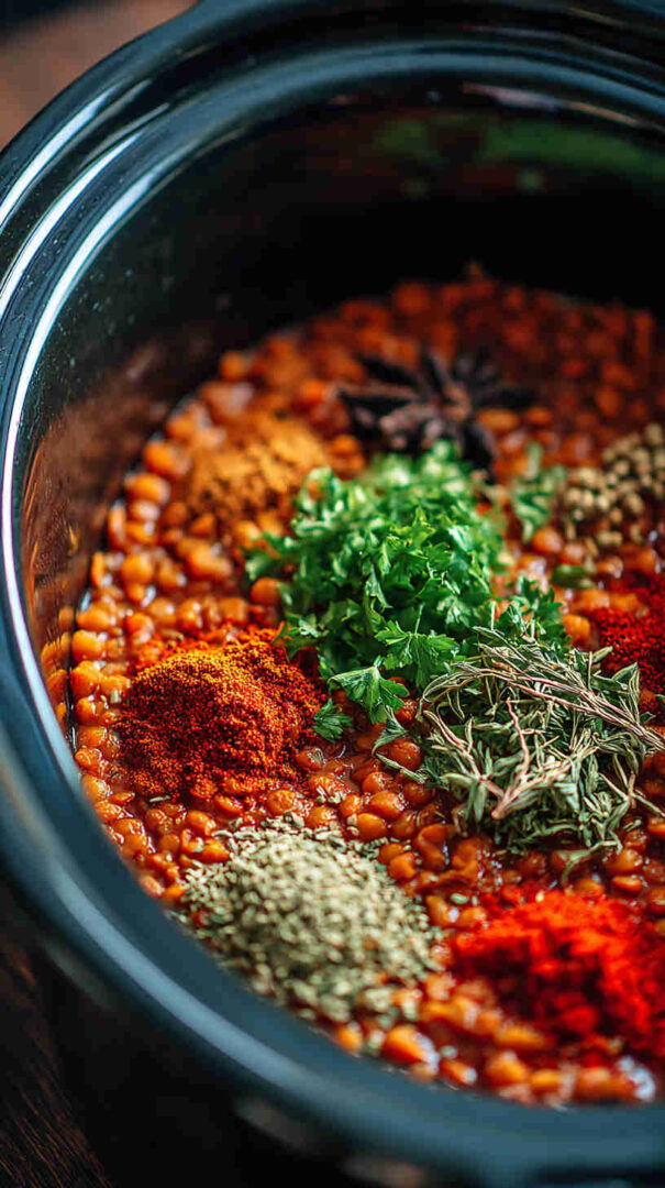 - Grab your slow cooker and pour in the rinsed lentils along with 4 cups of veggie broth (or water for a lighter version). Set it to low and let the magic begin for about 3-4 hours—check that the lentils are super soft and mushy, almost falling apart.