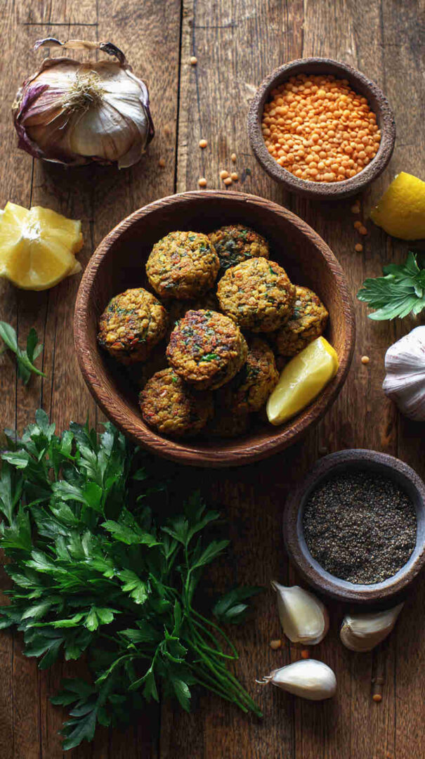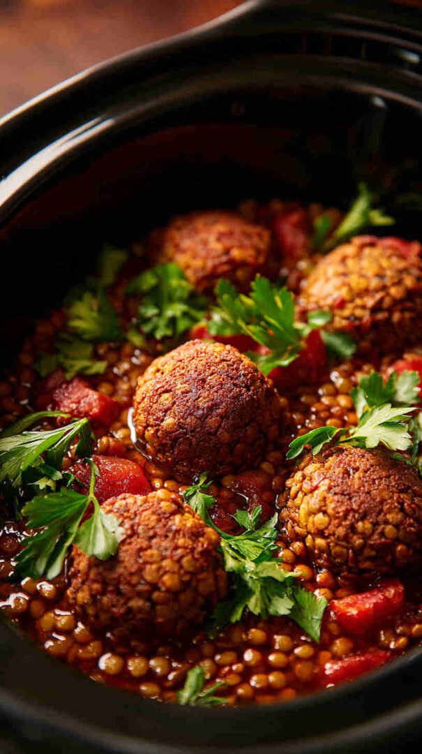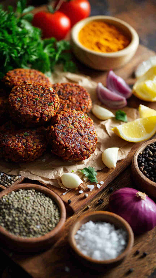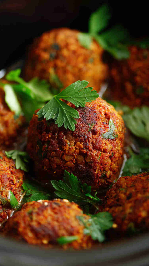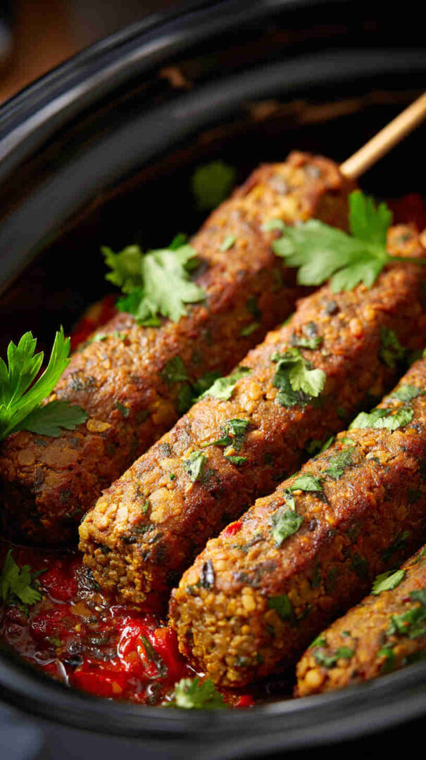 Vegan Turkish lentil kebabs slow-cooked with spices, perfect for mezze or wraps—healthy, flavorful global street food delight.
