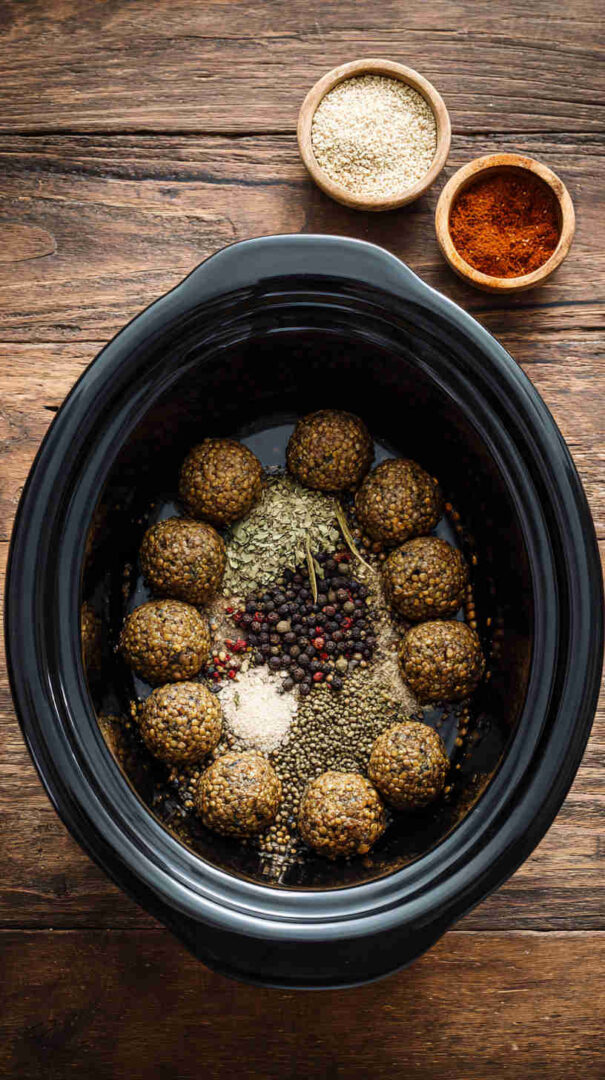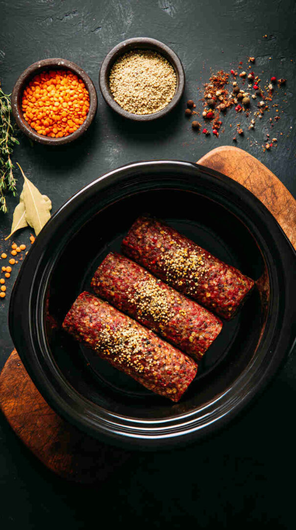 Red lentils are the star here—they cook down beautifully in the slow cooker to create a soft, bindable base rich in protein and iron. Fine bulgur (not coarse) is essential as it swells and thickens the mixture without additional cooking time.