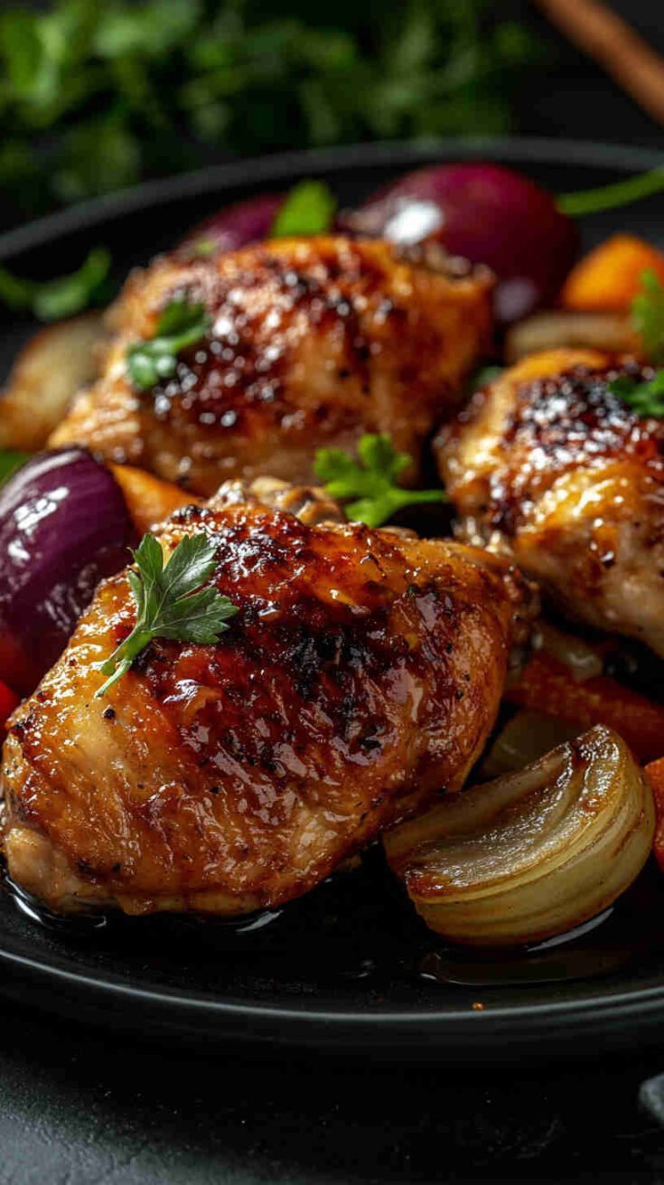 - Transfer chicken: Move thighs to a plate and loosely tent with foil—they’re resting like champions.