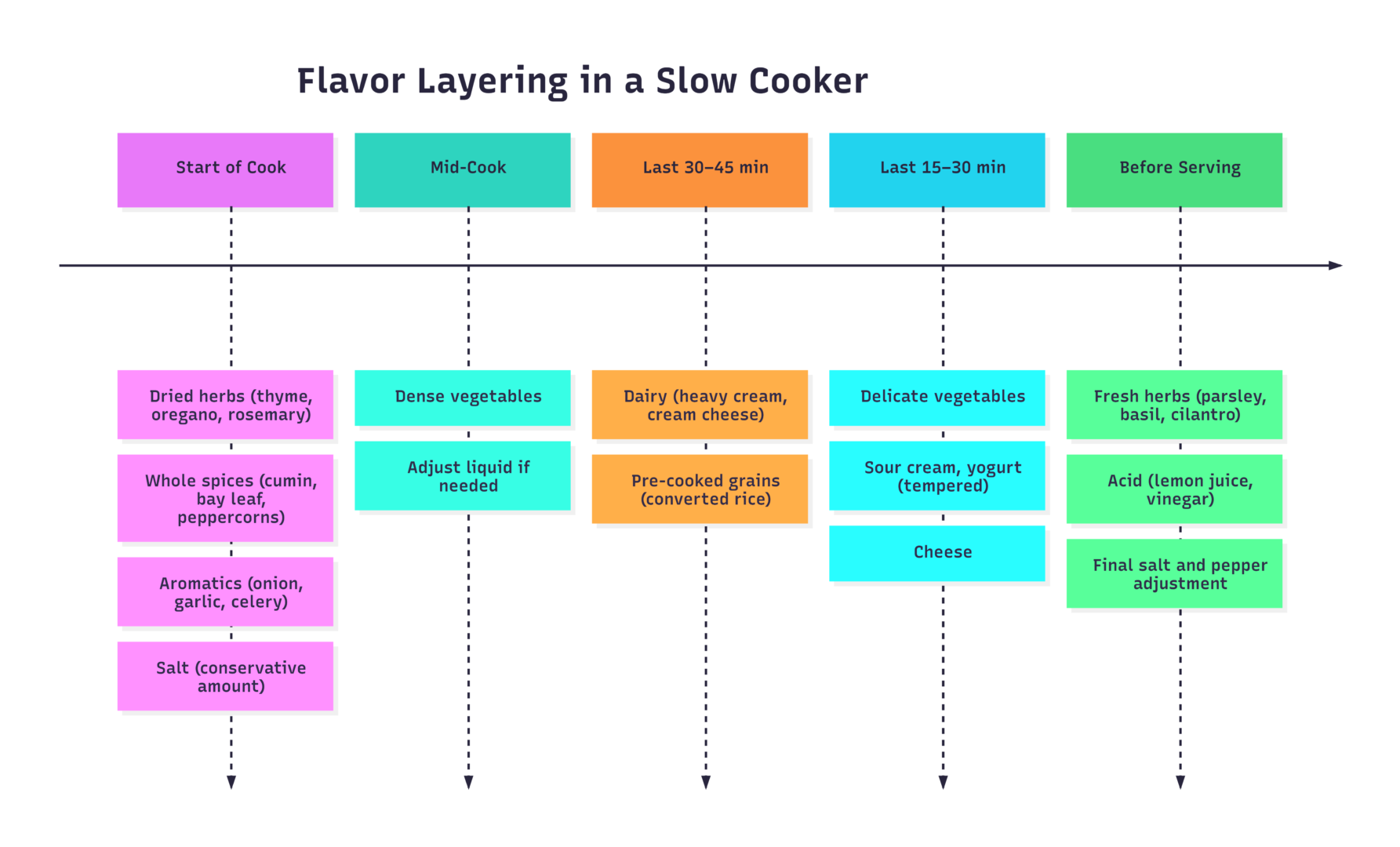 A slow cooker rewards patience and proper technique. The biggest wins come from understanding three things: timing (when each ingredient goes in), temperature (the distinction between Low, High, and Warm), and dairy handling (always late, always tempered). Master those three areas and the slow cooker becomes one of the most reliable tools in your kitchen — capable of producing deeply flavorful, restaurant-quality results with minimal active effort.